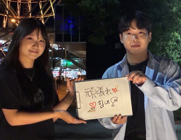 釜山外国語大学からの交換留学生が、小児がんで闘病中の子どもたちに向けて応援メッセージを送りました。