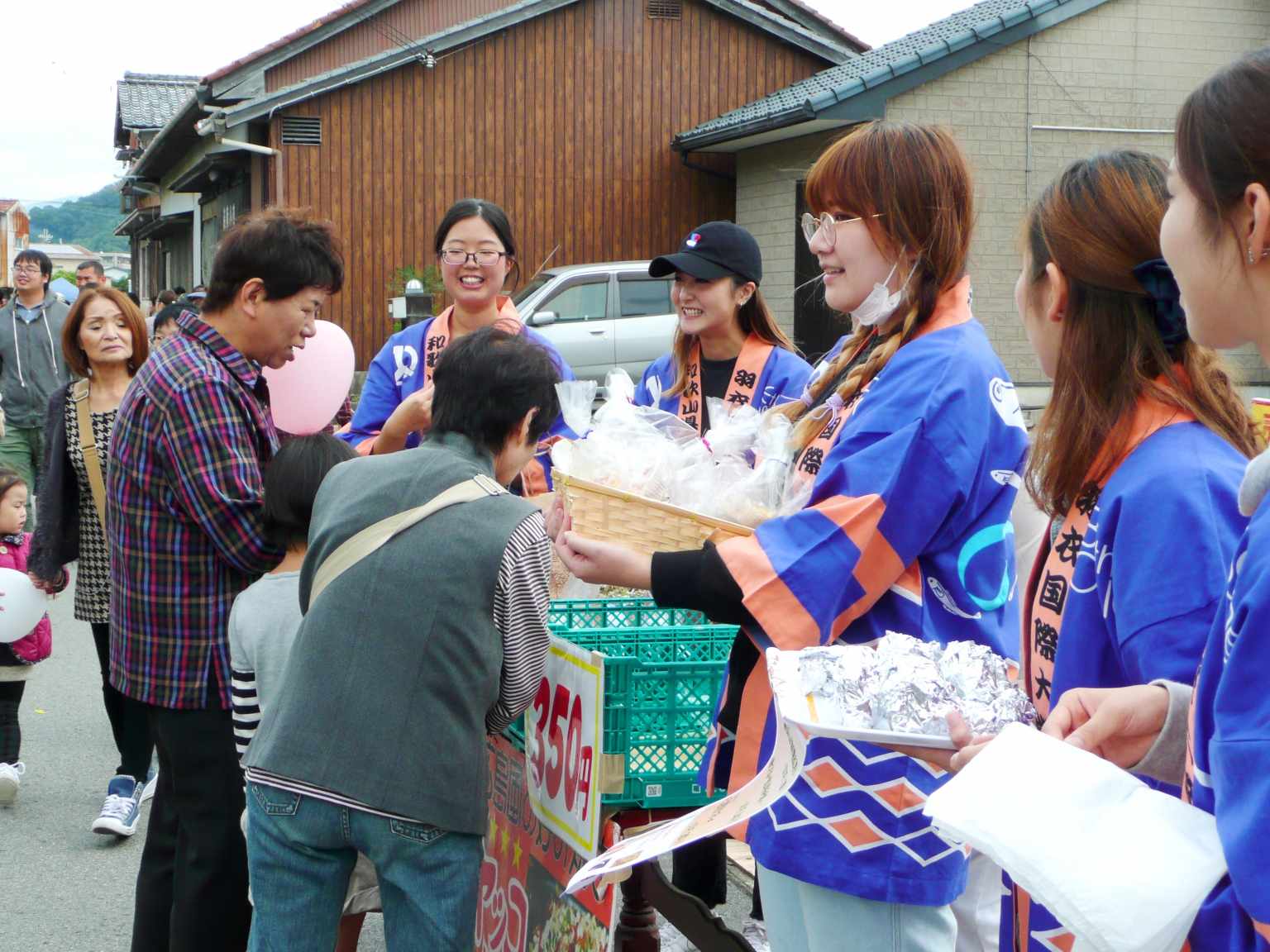 会場外にも販売に出向いた学生たちは、お好み焼きを販売していた地元の方に「隣で売ってもいいよ」と声をかけていただき、並んで販売させてもらうことができ、感謝の気持ちでいっぱいになったと話していました。
