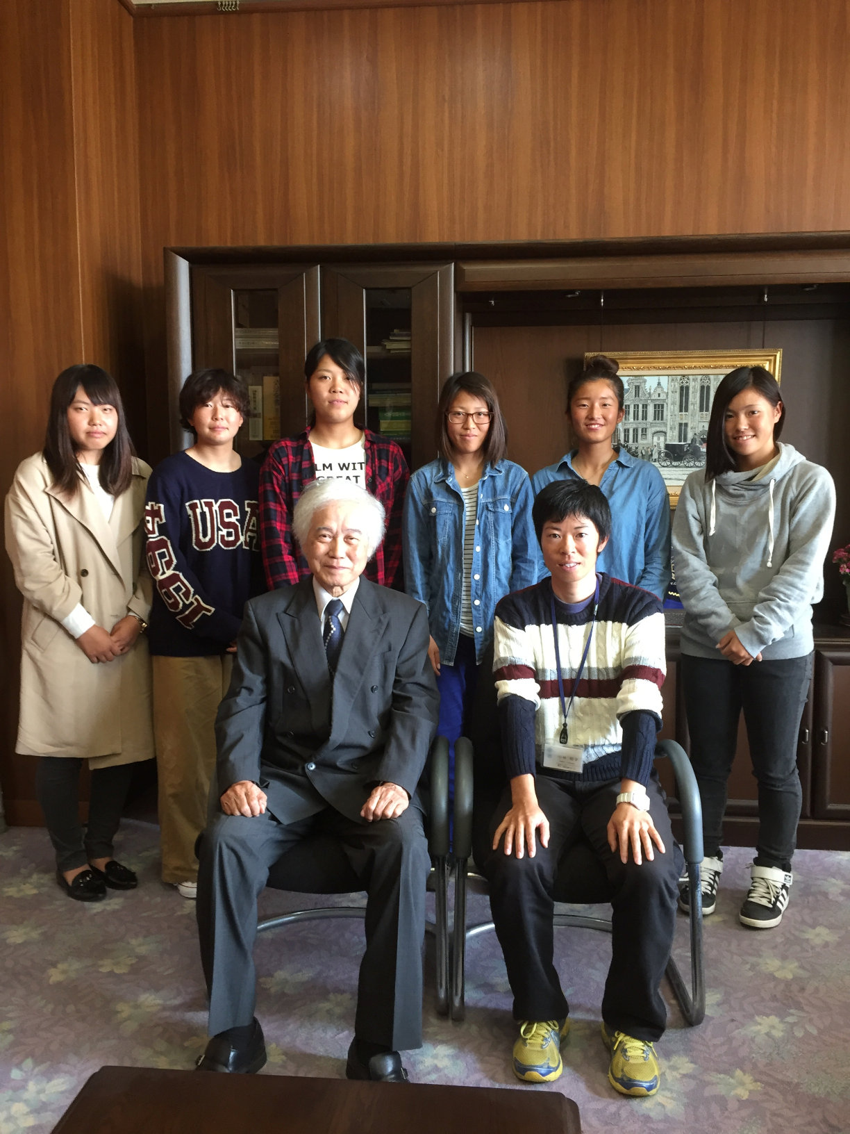 2016年10月26日(水)、本学女子ソフトボール部の小林朝子監督と選手たちが岸本幸臣学長を訪問し、関西学生ソフトボールリーグ戦(秋季)の結果報告を行いました。