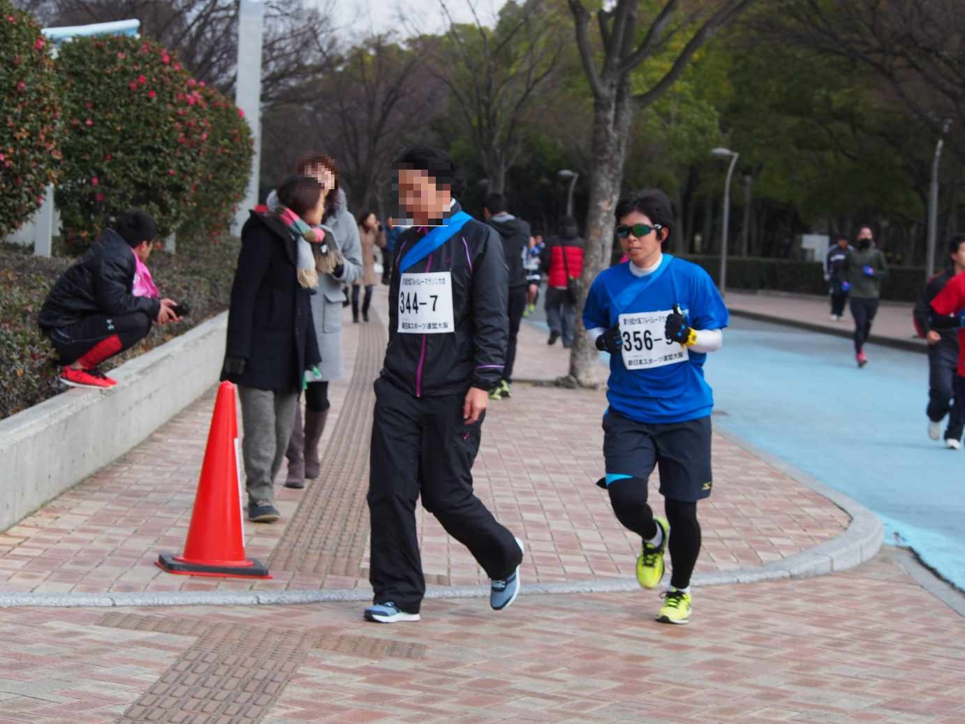 5回目の出場となる羽衣国際大学チーム。キャプテンの朝西知徳教授が掲げた目標はタイムで3時間を切ること。当日未明には雪が降ったほど寒い中での大会となりましたが、羽衣国際大学チームメンバーは目標に向かって心ひとつに、長居公園内のコースを駆け抜けました。