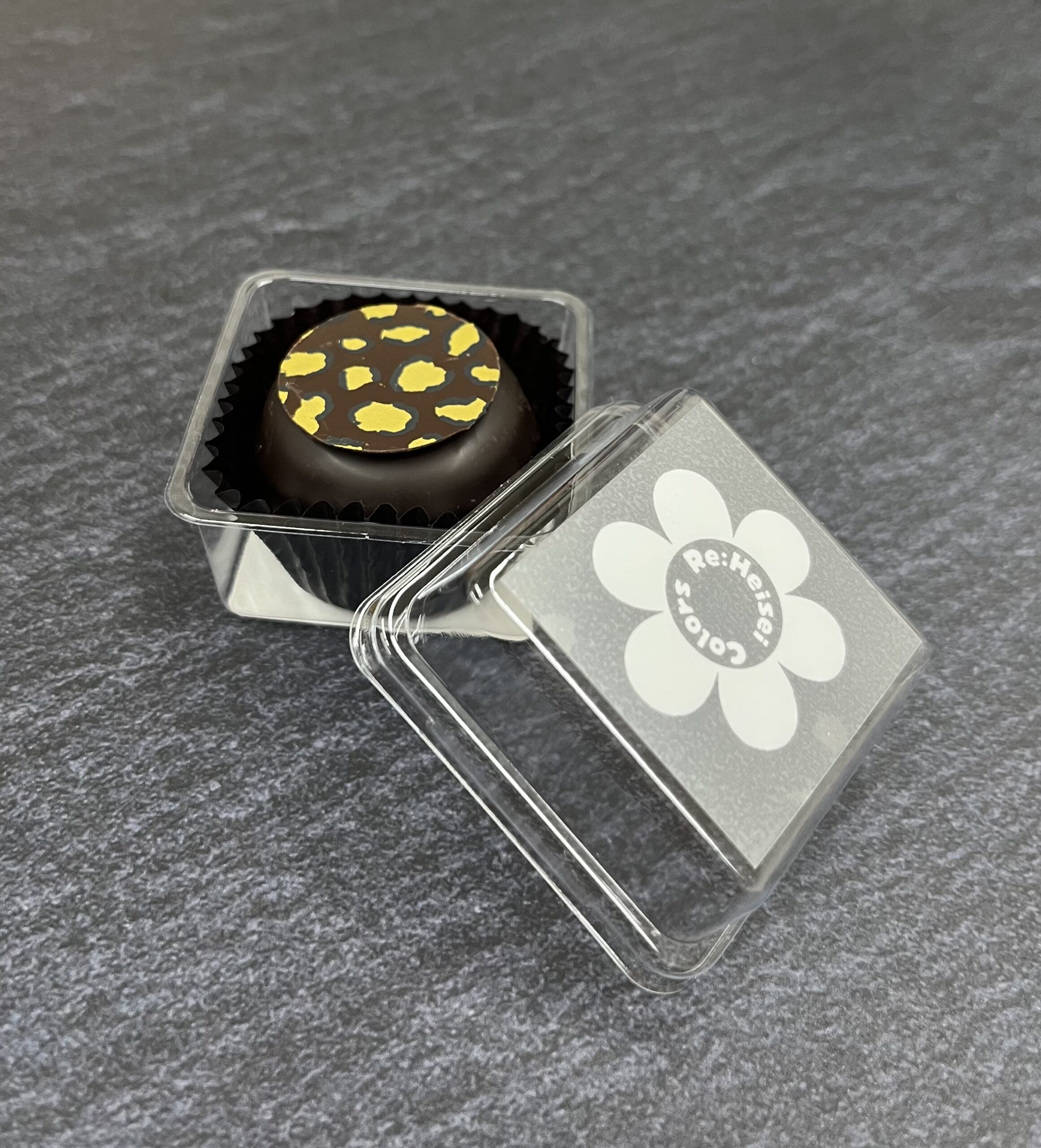 毎回楽しみな食クリエイトコース制作のスイーツは、平成に圧倒的ブームとなったマカロンにヒョウ柄をプリントするというアイデアが詰まったチョコレートのお菓子でした。