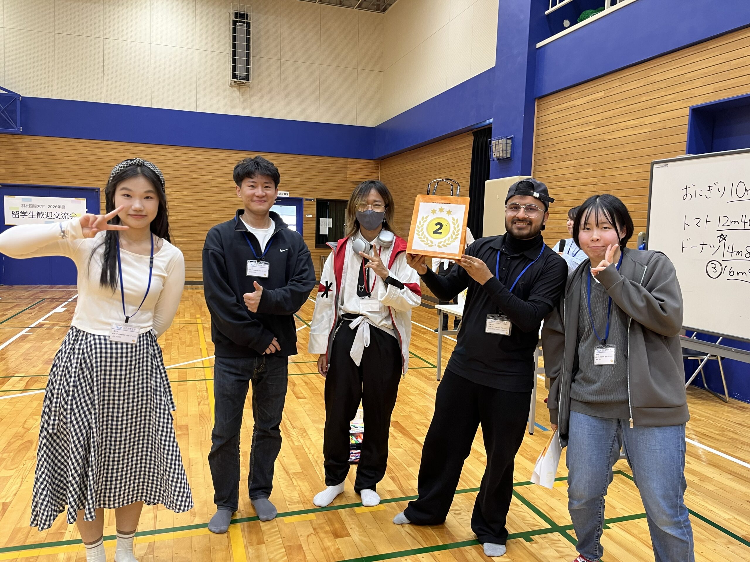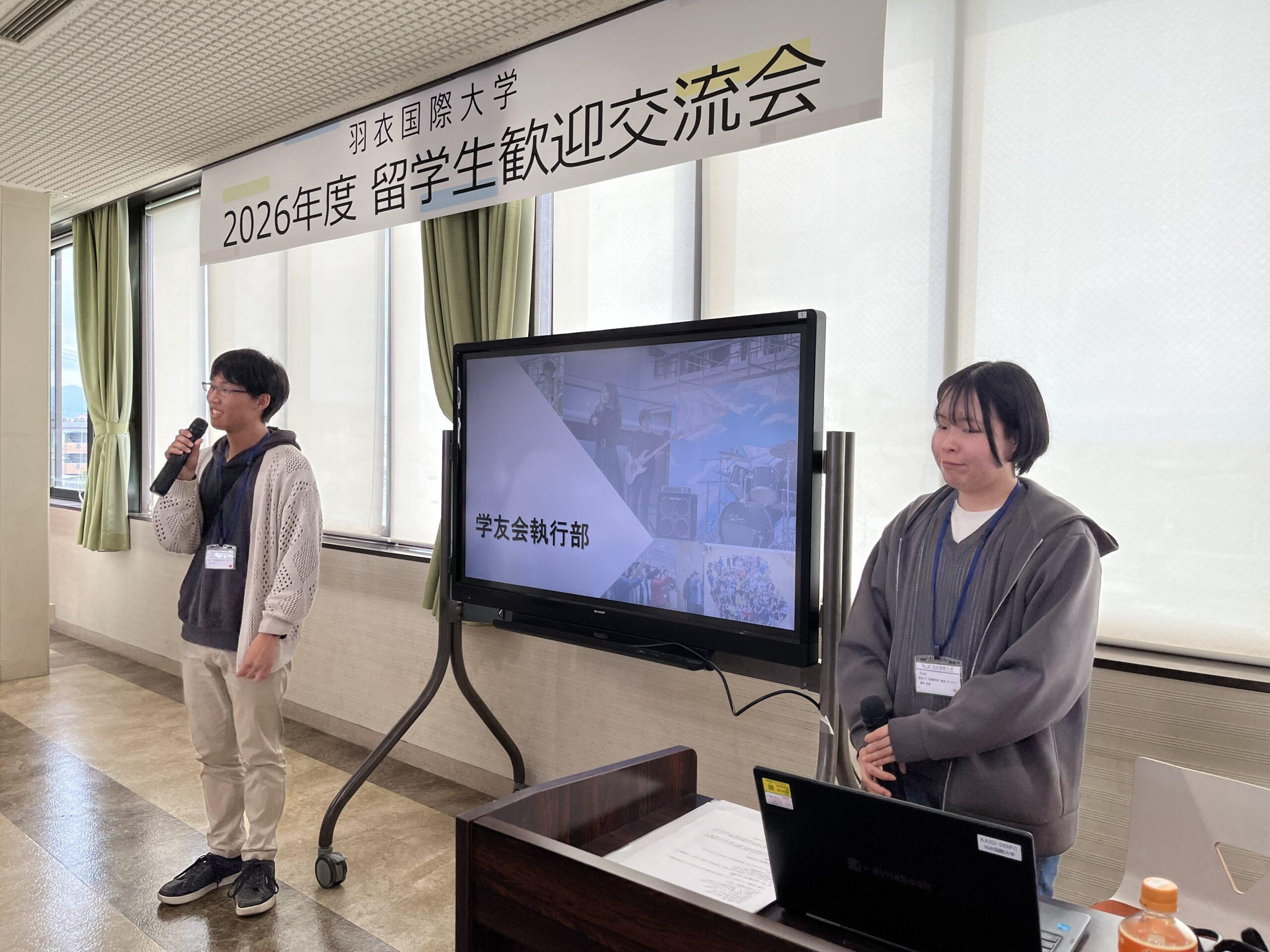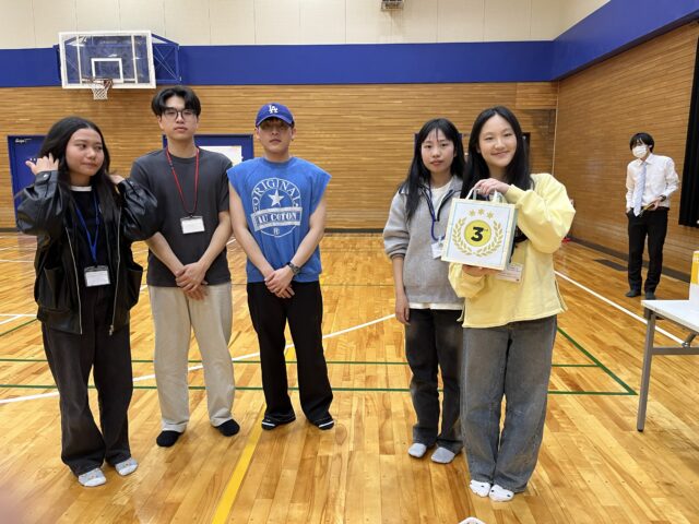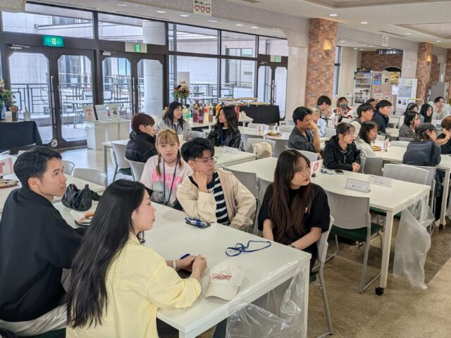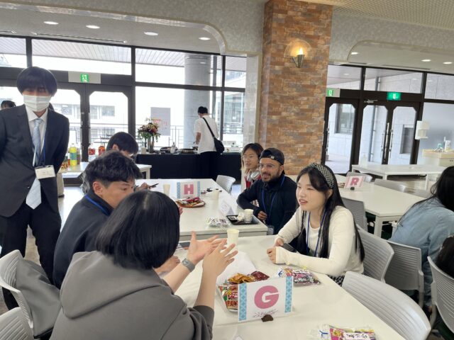 ゲームの後にはサークル・学内団体紹介が行われ、オープンキャンパススタッフ「はごキャス」と「学友会」のメンバーが登壇しました。日頃の活動内容やイベントの魅力を熱心に紹介する先輩たちの姿に、留学生たちも興味深く耳を傾けており、キャンパスライフへの期待が膨らむ時間となりました。