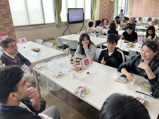 その後、テーブル毎のチームで「自己紹介記憶ゲーム」と「全員一致ゲーム」を実施しました。新しく知り合った友達と協力してゲームに挑戦することで、最初は緊張していた新入生たちにも多くの笑顔が見られました。
