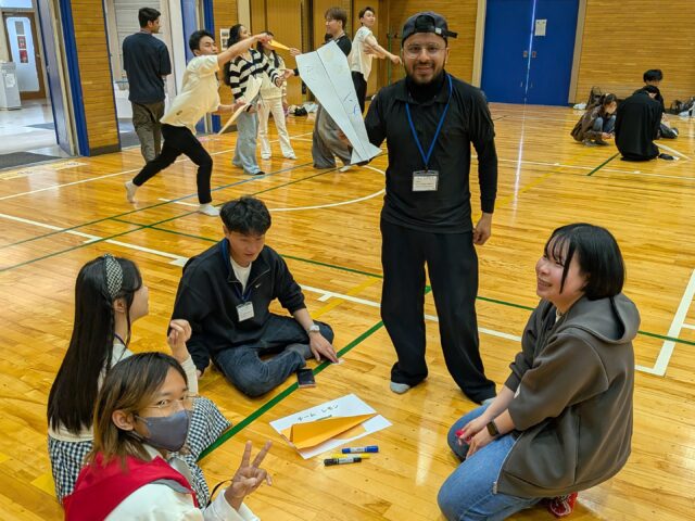 各チーム、大きさや種類の異なる紙の中から「一番飛ぶもの」を真剣に選び、折り方を調べたり、チームでアイデアを出し合ったりして、世界に一つだけの紙ヒコーキを完成させました。