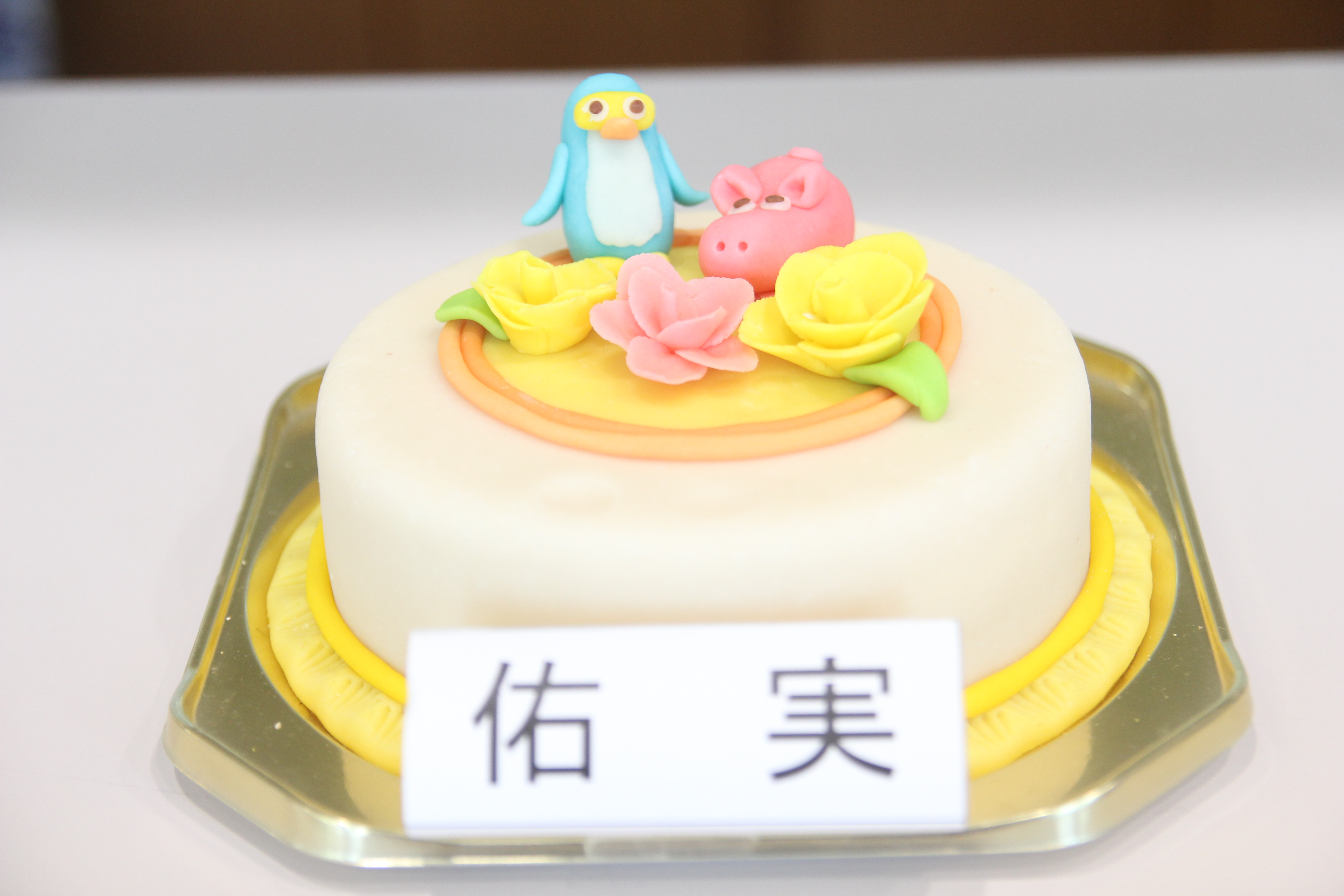 マジパンとは、粉末のアーモンドと粉砂糖を練り合わせ、食用色素で色を付けた生地で、花や動物などを自由に形どったものです。