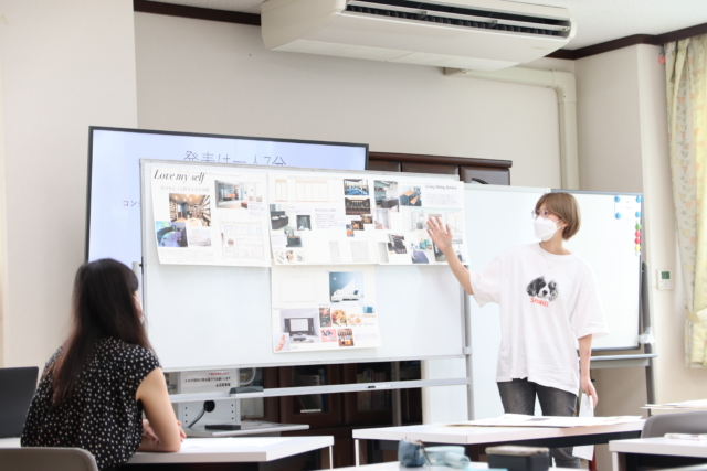 2021年8月3日、人間生活学科の猪木陽子先生が担当する「住空間デザイン実習Ⅰ」の授業にて、設計課題のプレゼンテーションを行いました。