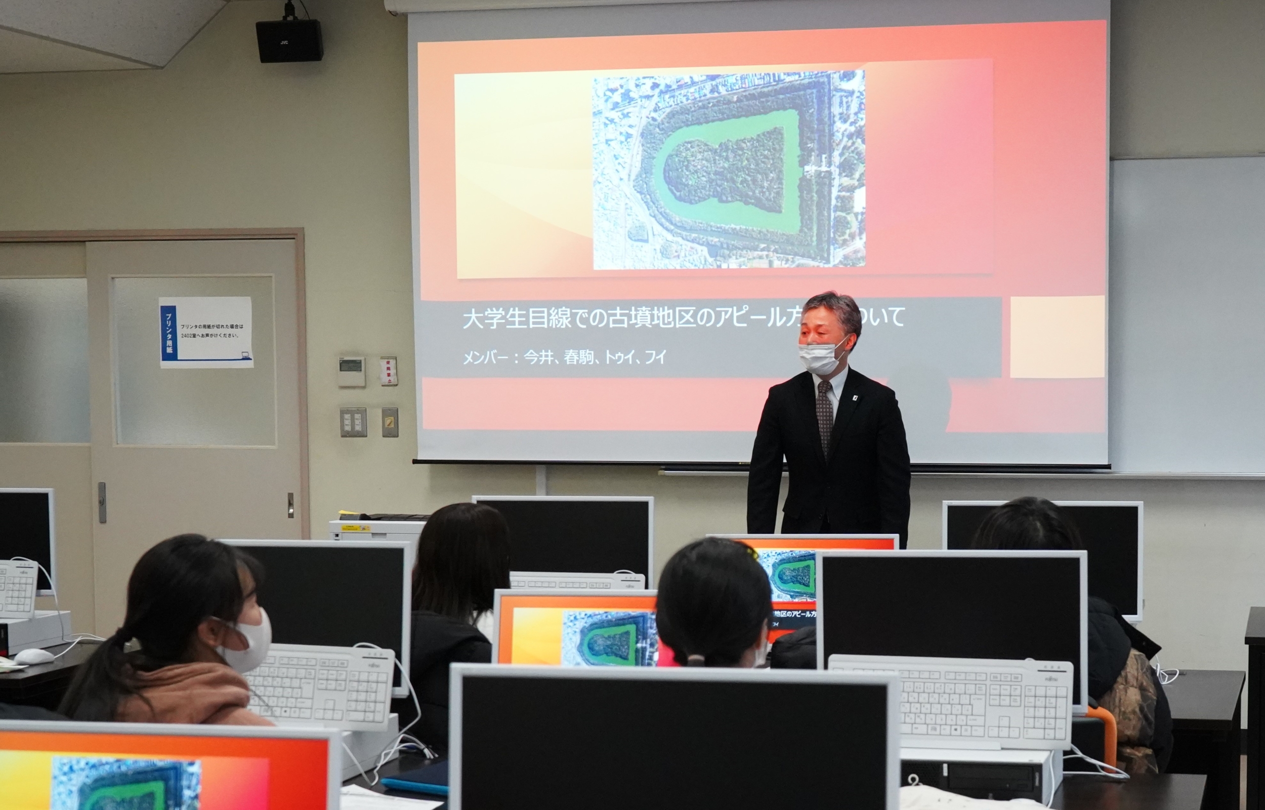 この取り組みでは、まず6月~7月にかけて本学学生を対象に堺の観光資源の認識調査を実施し、その結果を踏まえ、ゼミ生がここを取り上げてみたいと思った資源をピックアップし、その資源に対してのアピール方法などをプレゼンしました。