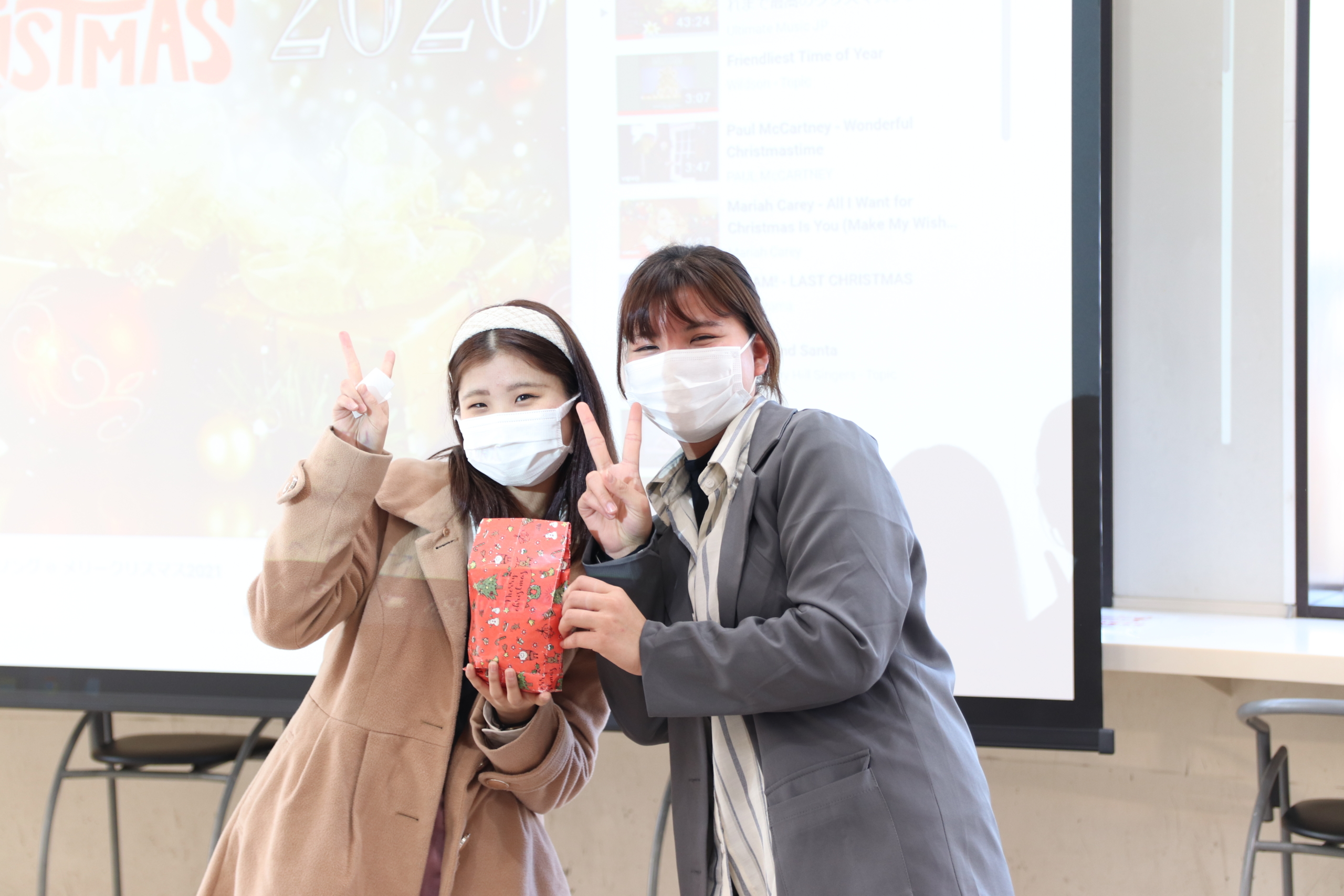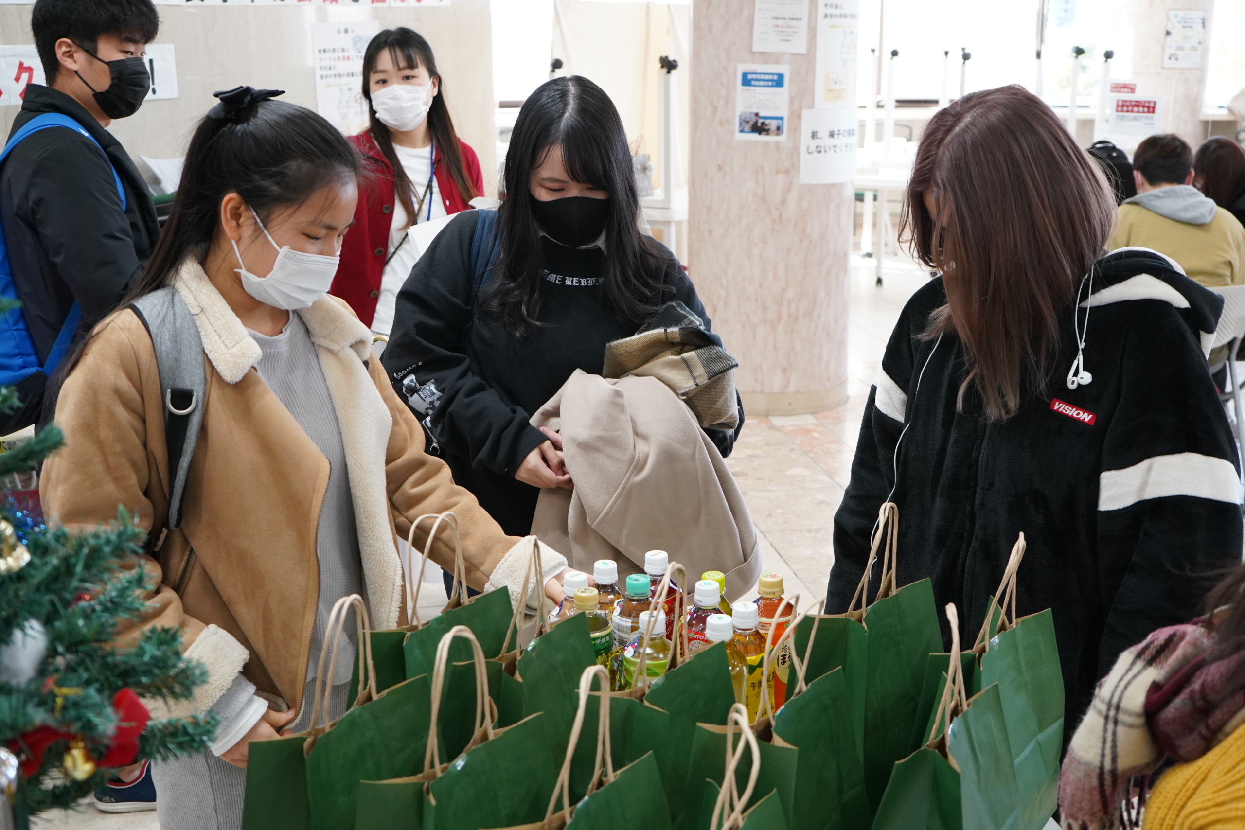 参加した学生は、11月に発足したカフェサークルに製作してもらったクリスマススイーツを受け取り、一足早いクリスマスを感じていました。