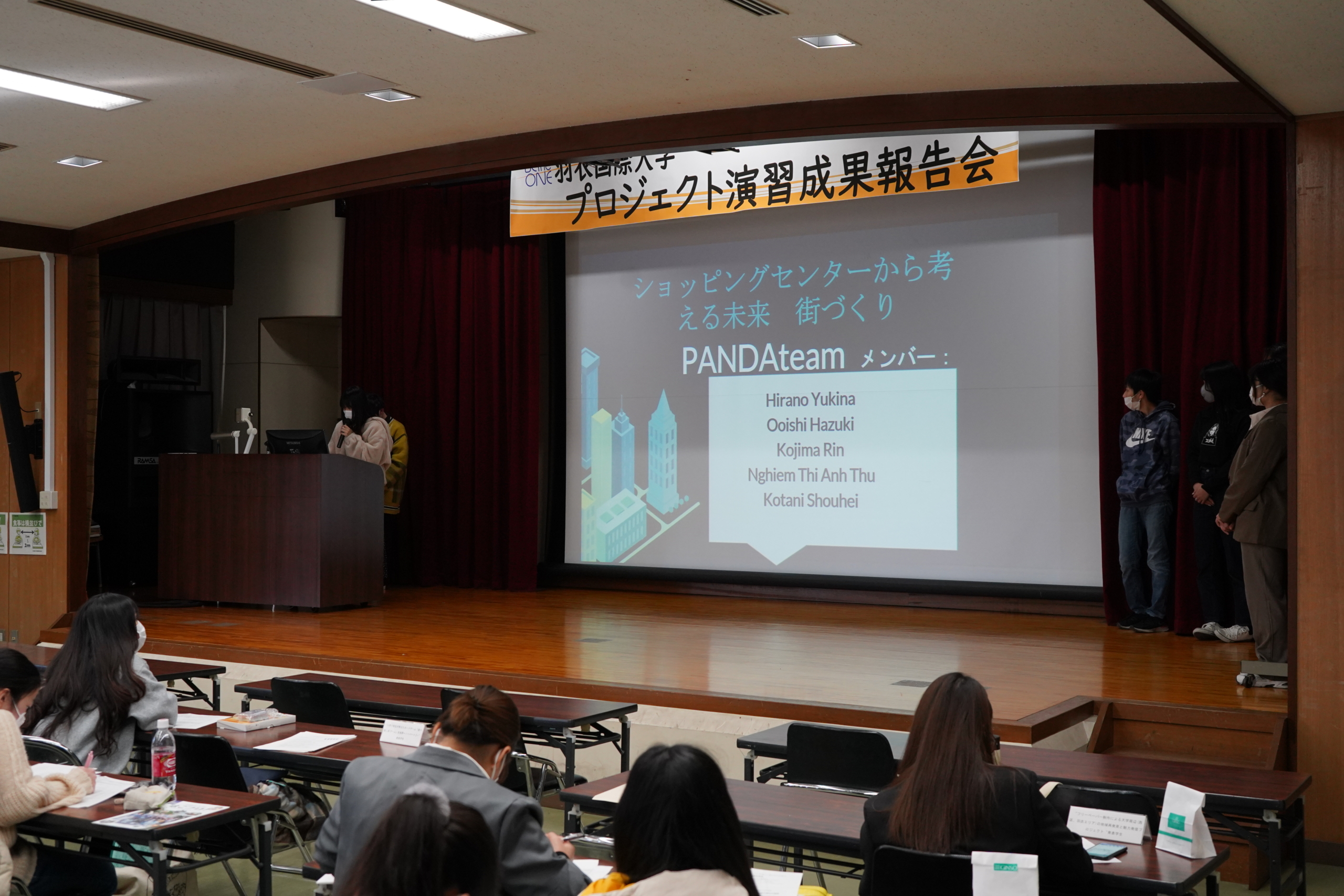 報告会では、2チームに分かれて、それぞれ和歌山県と茨城県にショッピングセンターを建設することを想定し、それぞれの地域性に合った、ショッピングセンター内の機能や施設、立地についての提案が行われました。