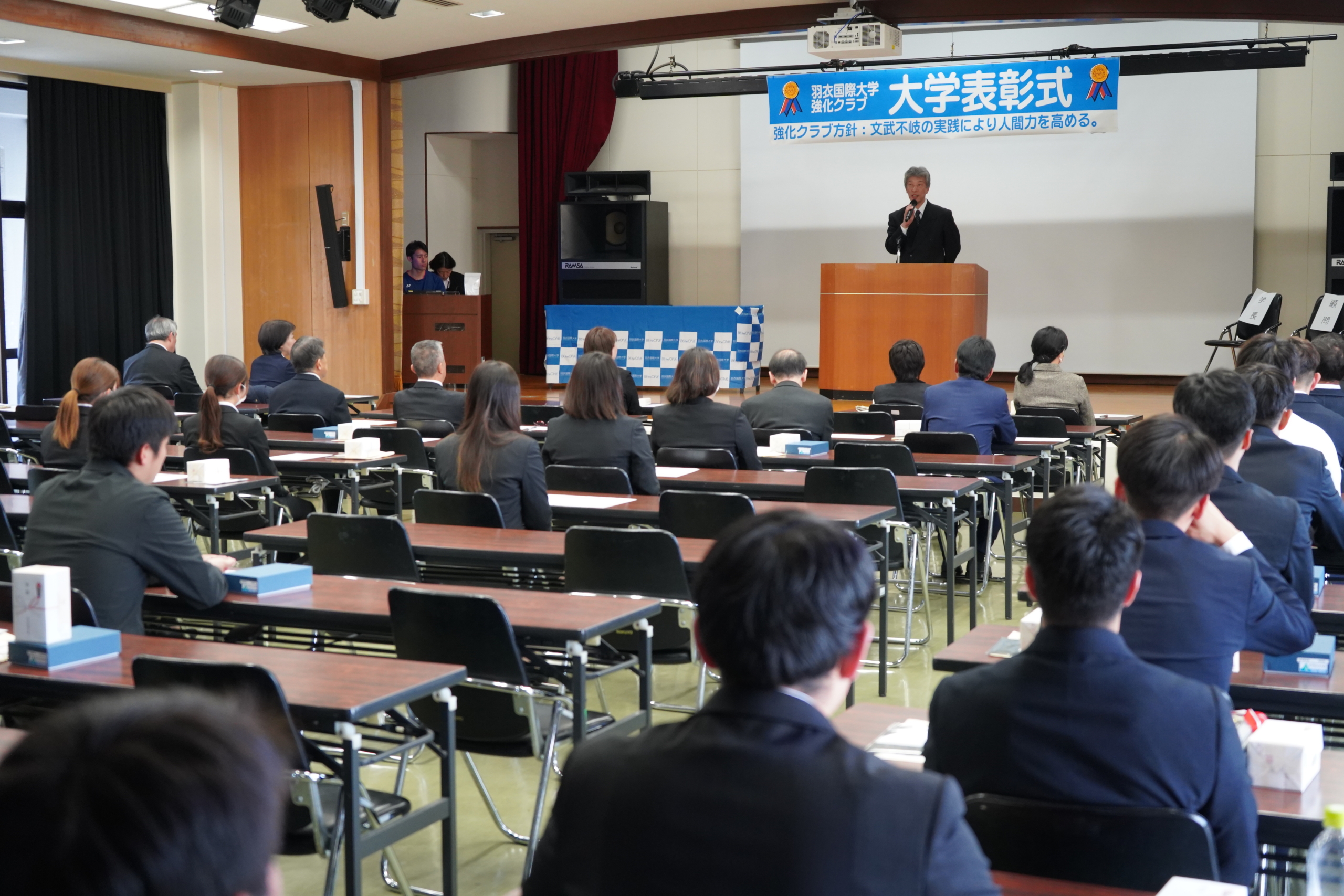 2023年12月3日(日)、文武不岐を全うし、まもなく卒業を迎える強化クラブ所属の4年生に対して「強化クラブ大学表彰式」を行いました。