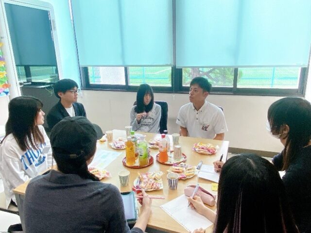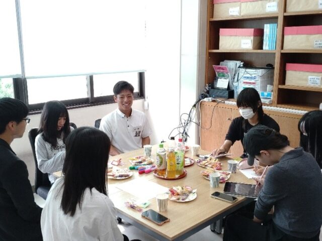 テーマは「内定者を囲む会 第2弾」。公務員に合格しているスポーツコース4年生と食品業界に内定をいただいている食クリエイトコース4年生が、就職活動の経験談をお話してくれました。