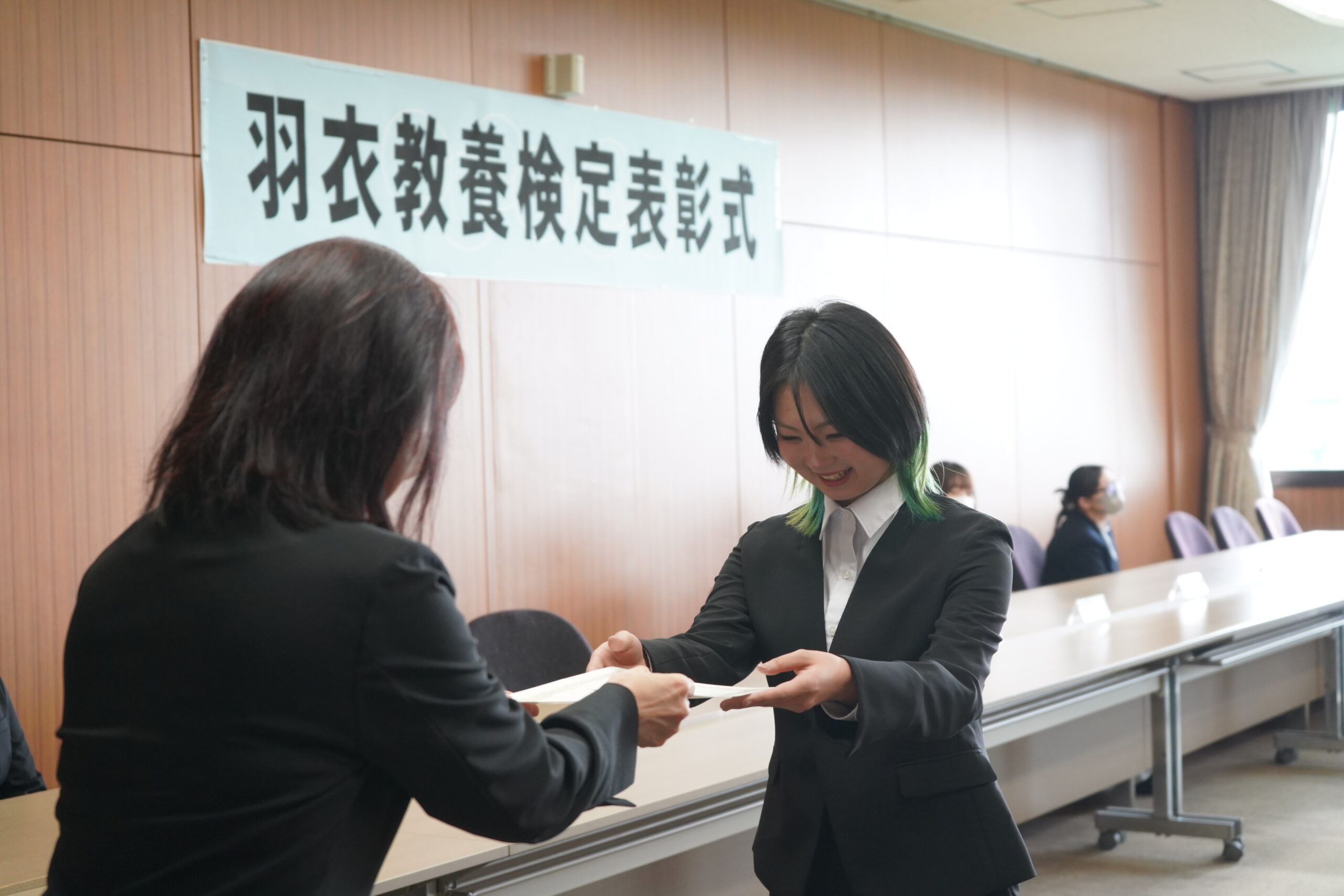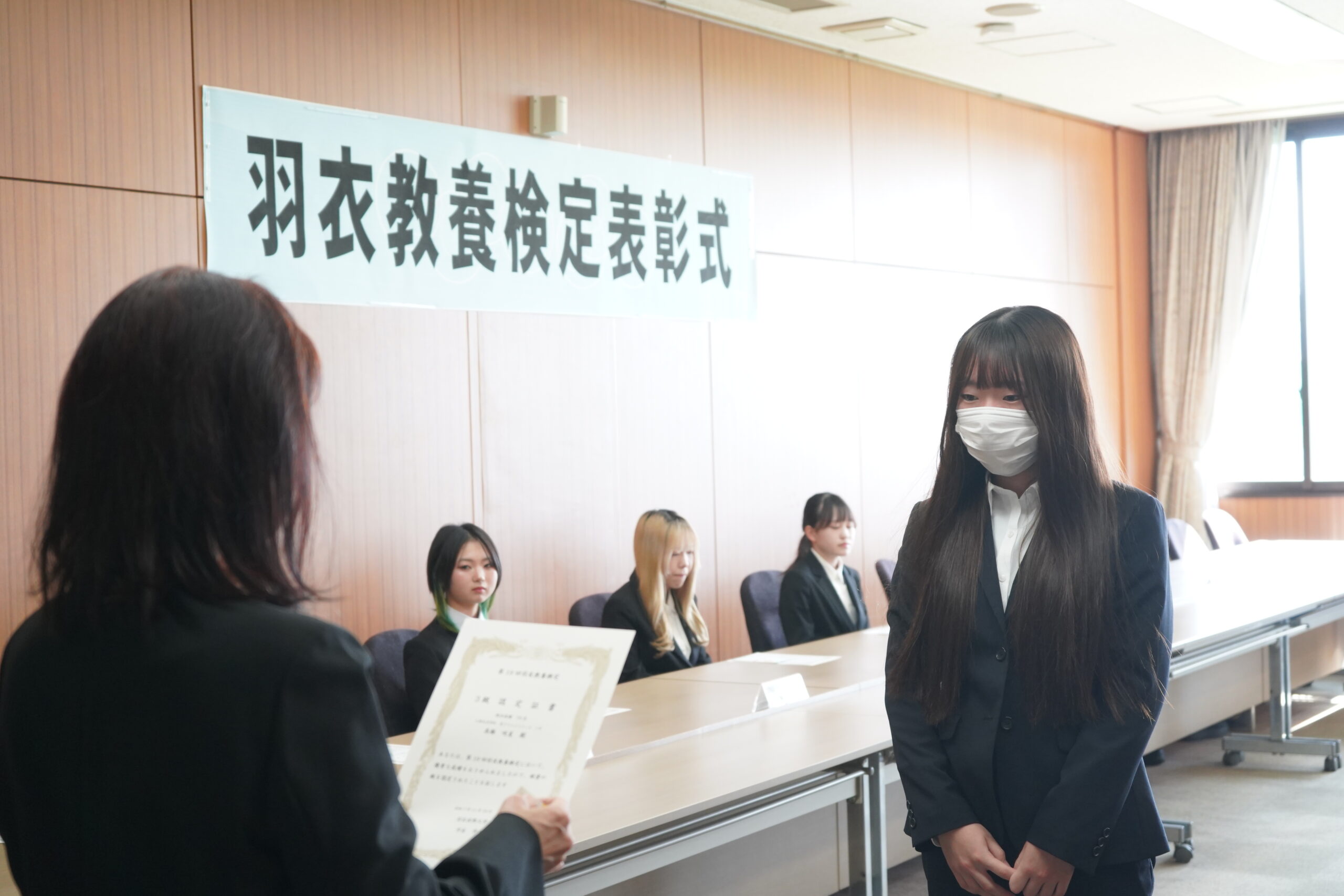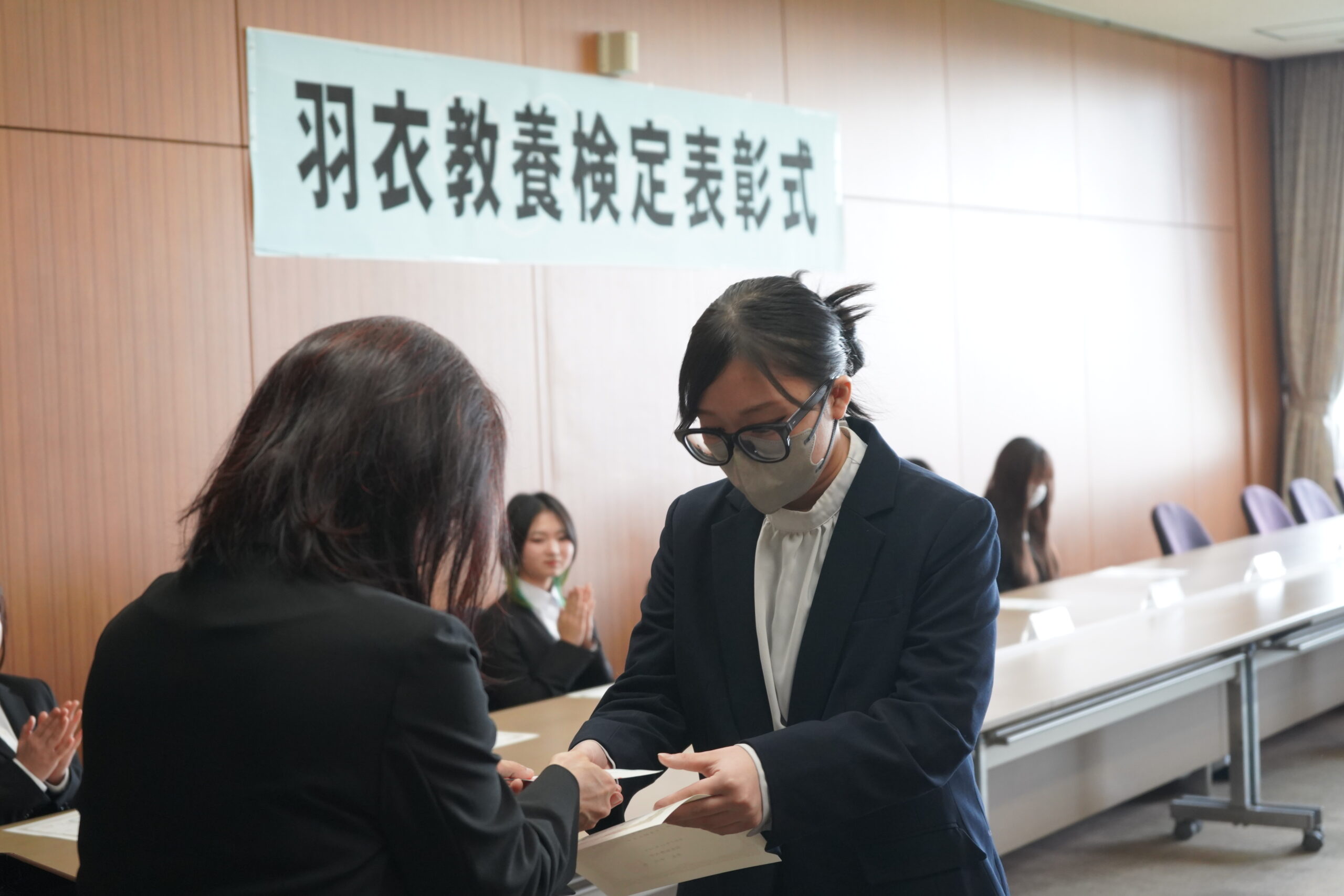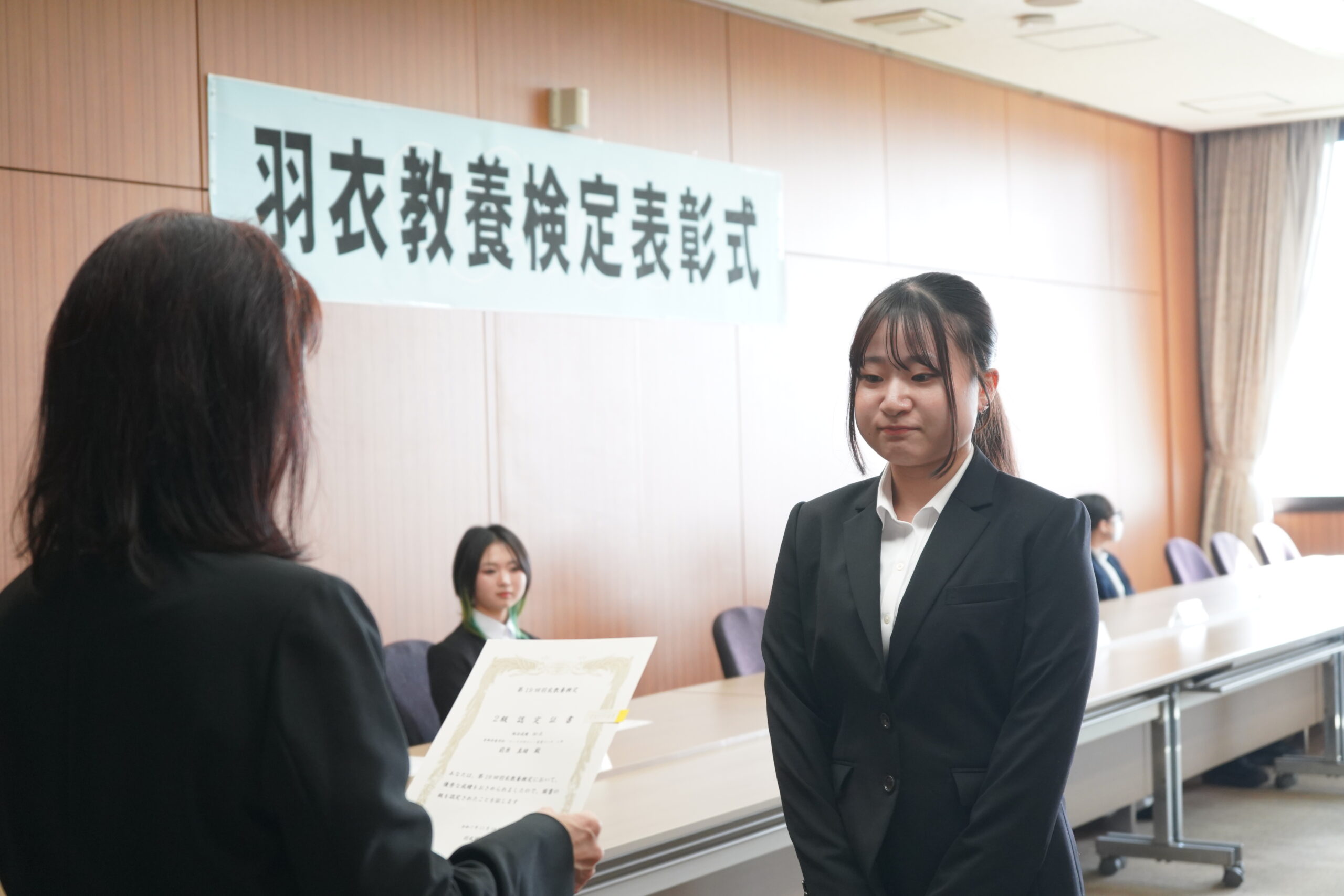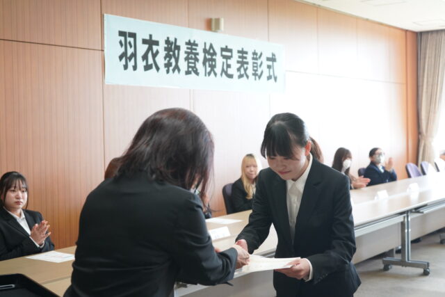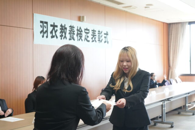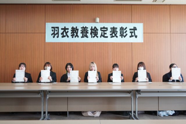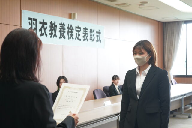 『羽衣教養検定』では優秀な成績をおさめ、「1級」「2級」「3級」に認定された学生に認定証が授与されました。