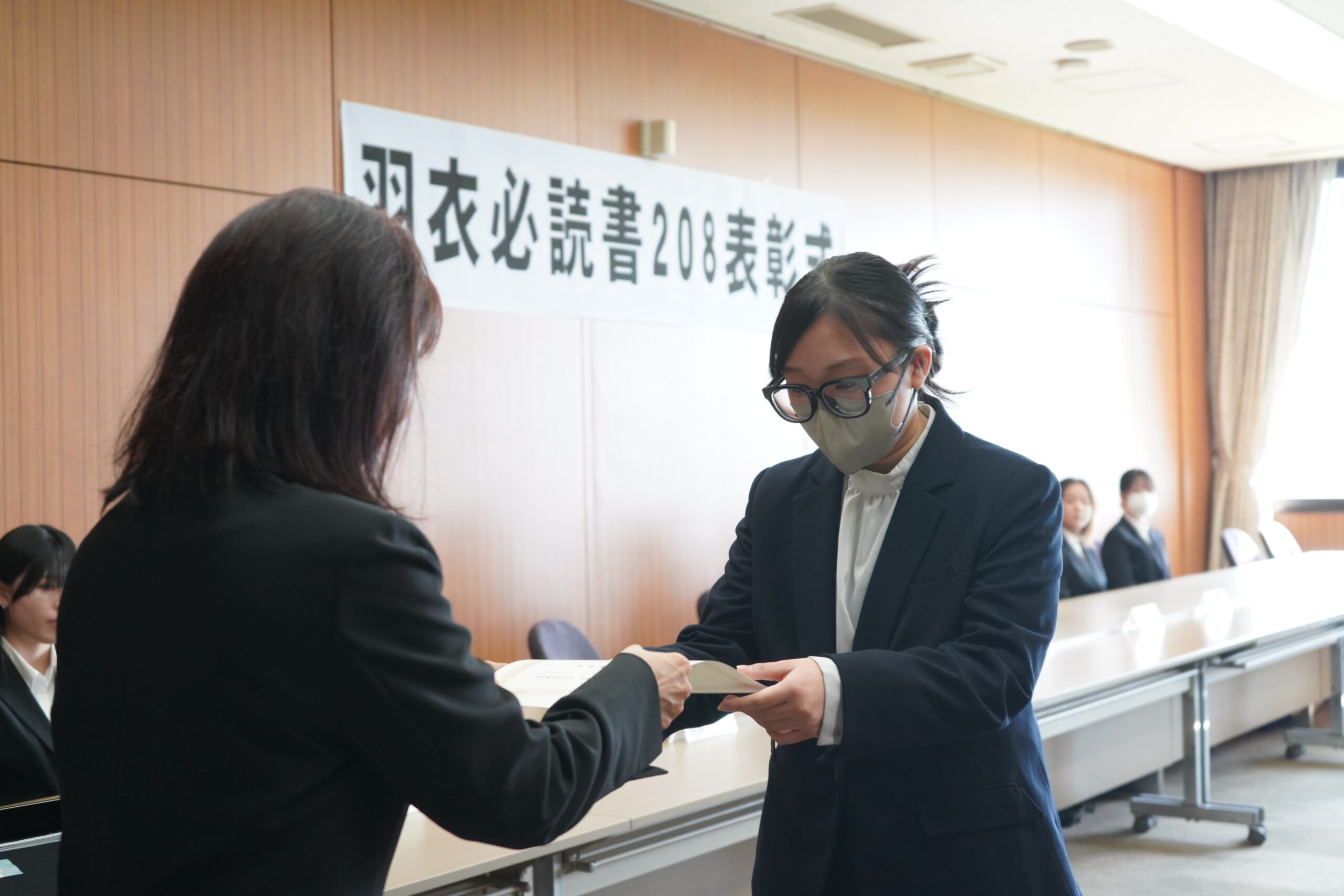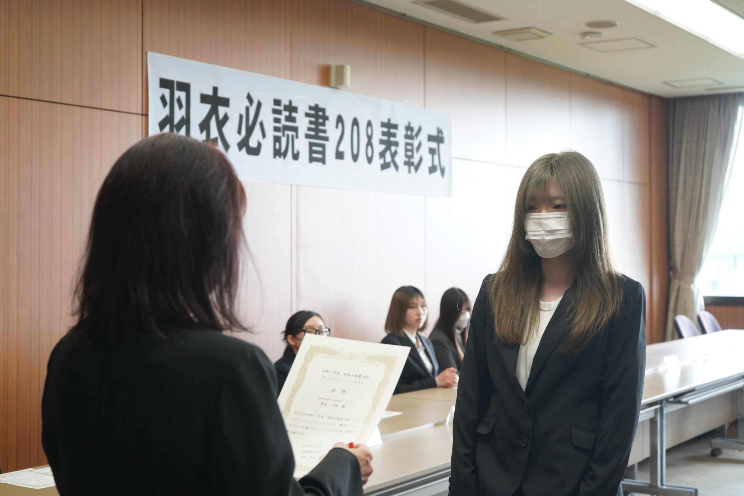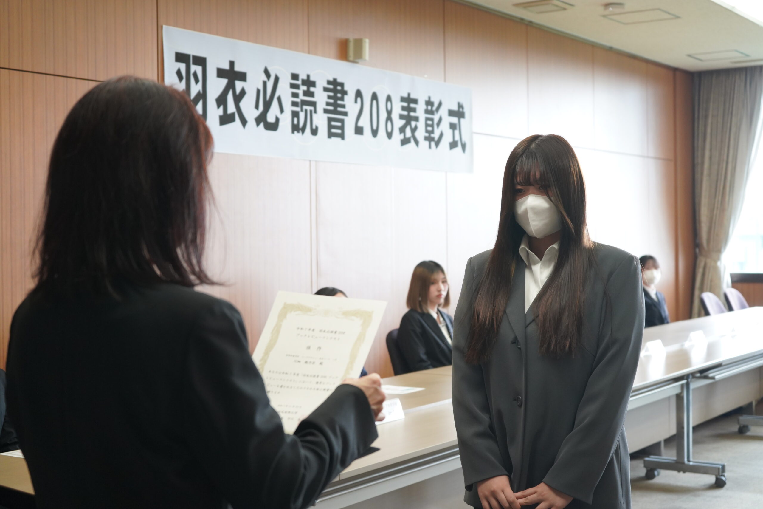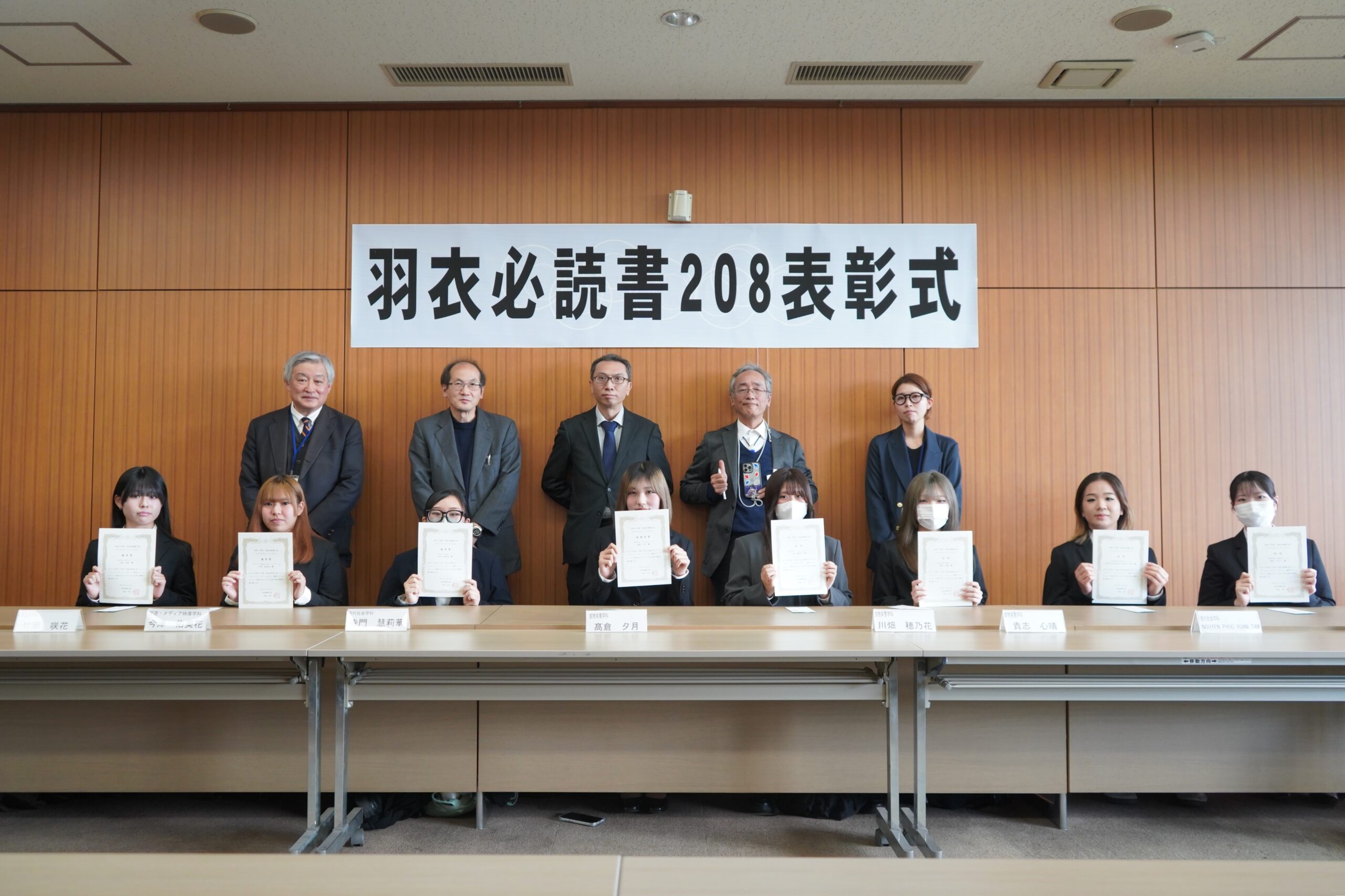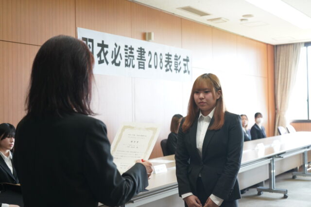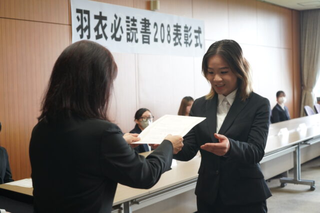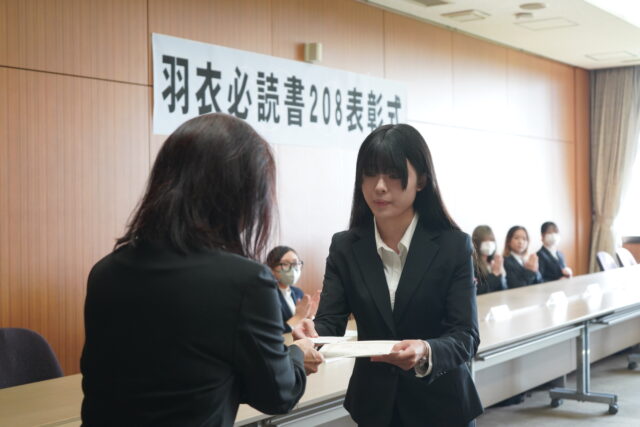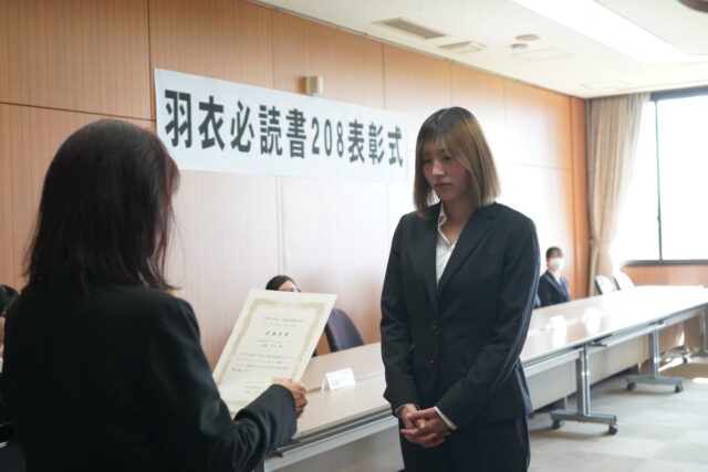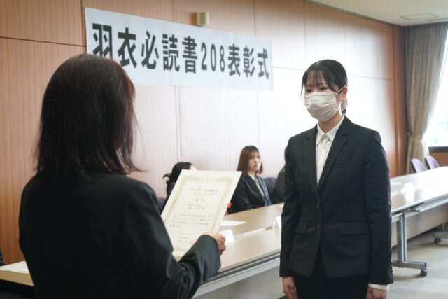 『羽衣必読書208ブックレビューコンテスト』では最優秀賞、優秀賞、佳作に選ばれた学生に賞状が贈られました。