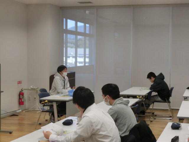 湯浅えき蔵にて一般社団法人湯浅町観光協会事務局次長 松林洋以氏より、湯浅町の観光の概要や地域課題についてお話をうかがい、その後、昨年度に中島ゼミナール学生ら(当時)が作成したまちあるきマップを活用して、島之内地区や伝建地区を巡検しました。