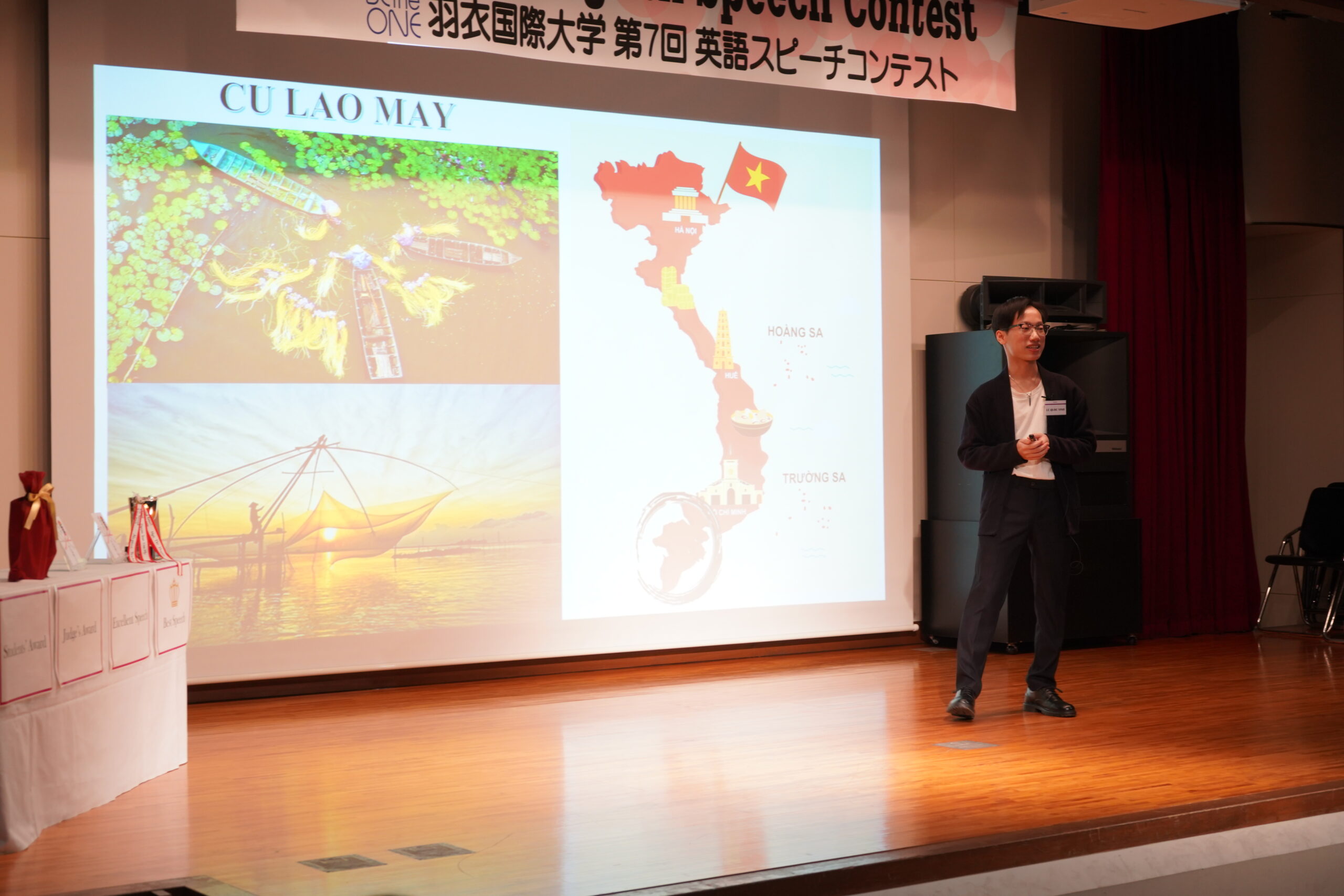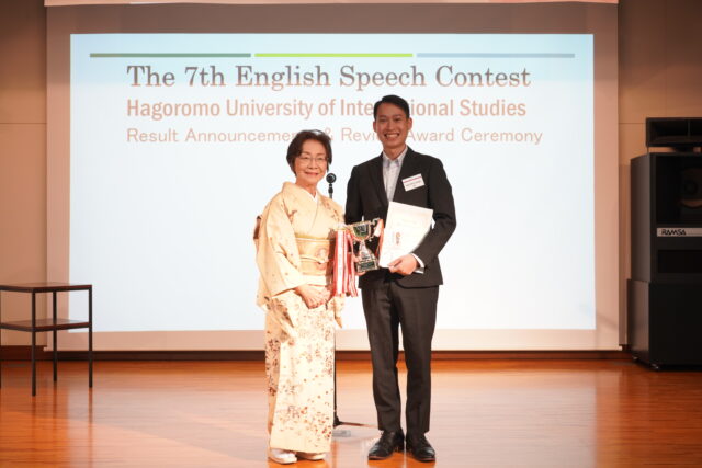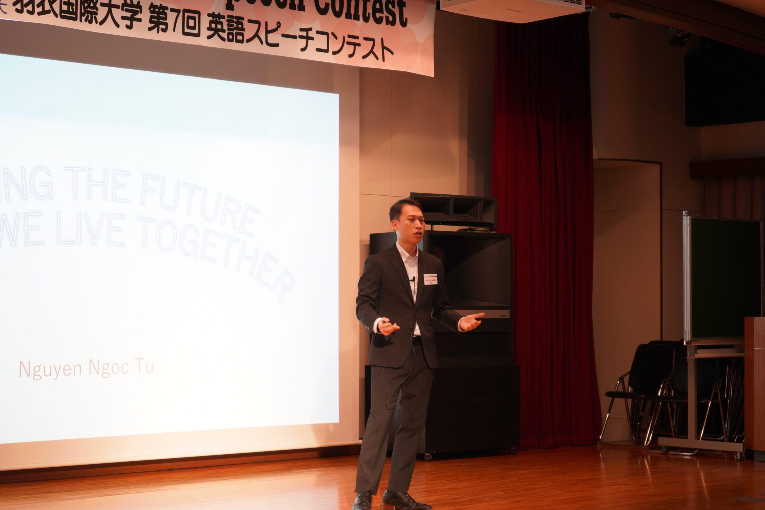 審査の結果、最優秀賞に選ばれたのは、Nguyen Ngoc Tuさんの『Building the Future Where We Live Together』でした。Tuさんは国際化する日本社会の課題について、自らの体験を踏まえ熱弁し、見事栄冠を勝ち取りました。