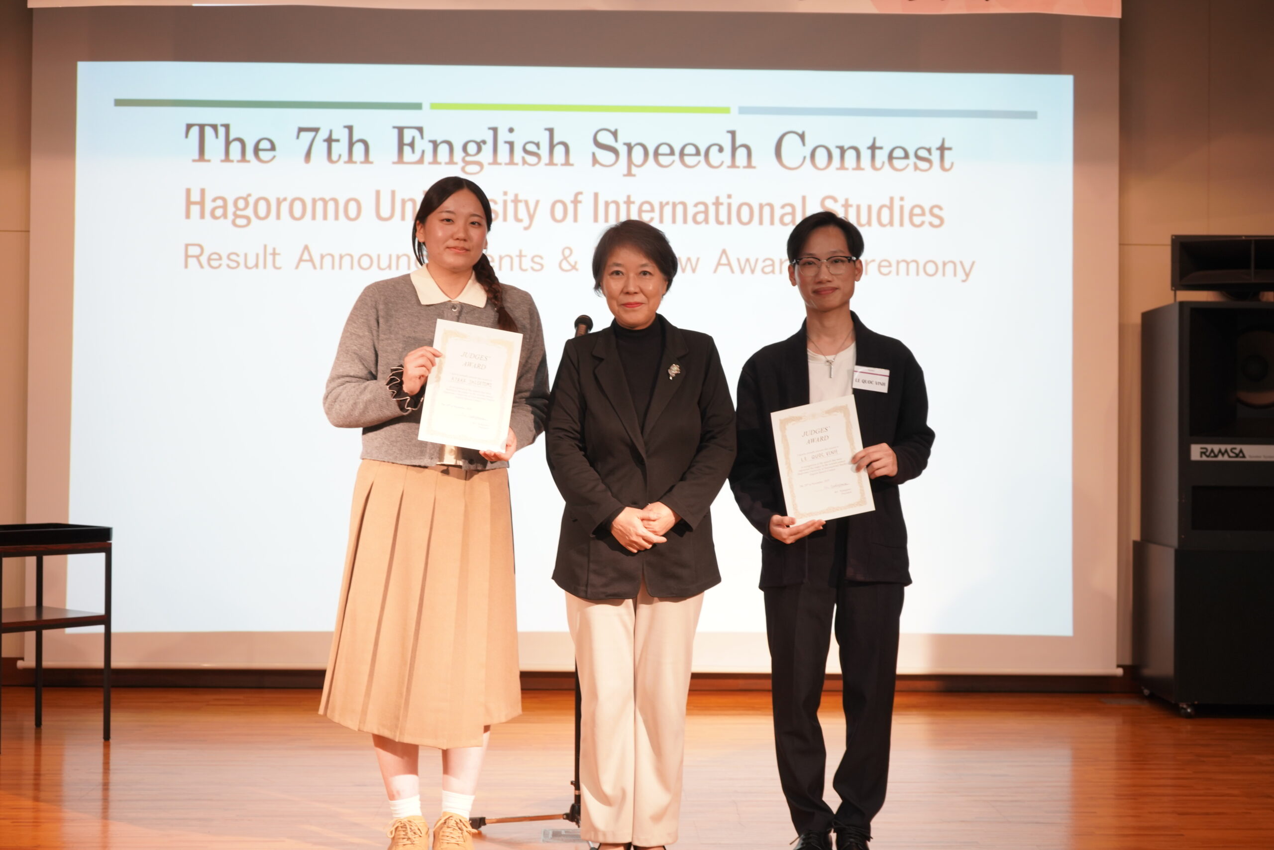 英語スピーチコンテストを開催するにあたり多大なご支援をいただきました同窓会美羽会、本学協定校のCNE1の皆様をはじめ、ご来賓、審査員、教職員の皆様に改めて厚く御礼申し上げます!