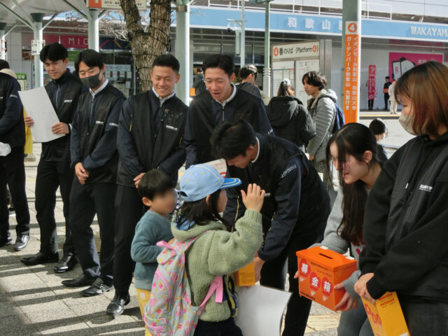 2025年12月20日、本学の学生16名が、JR和歌山駅前で募金活動を行いました。