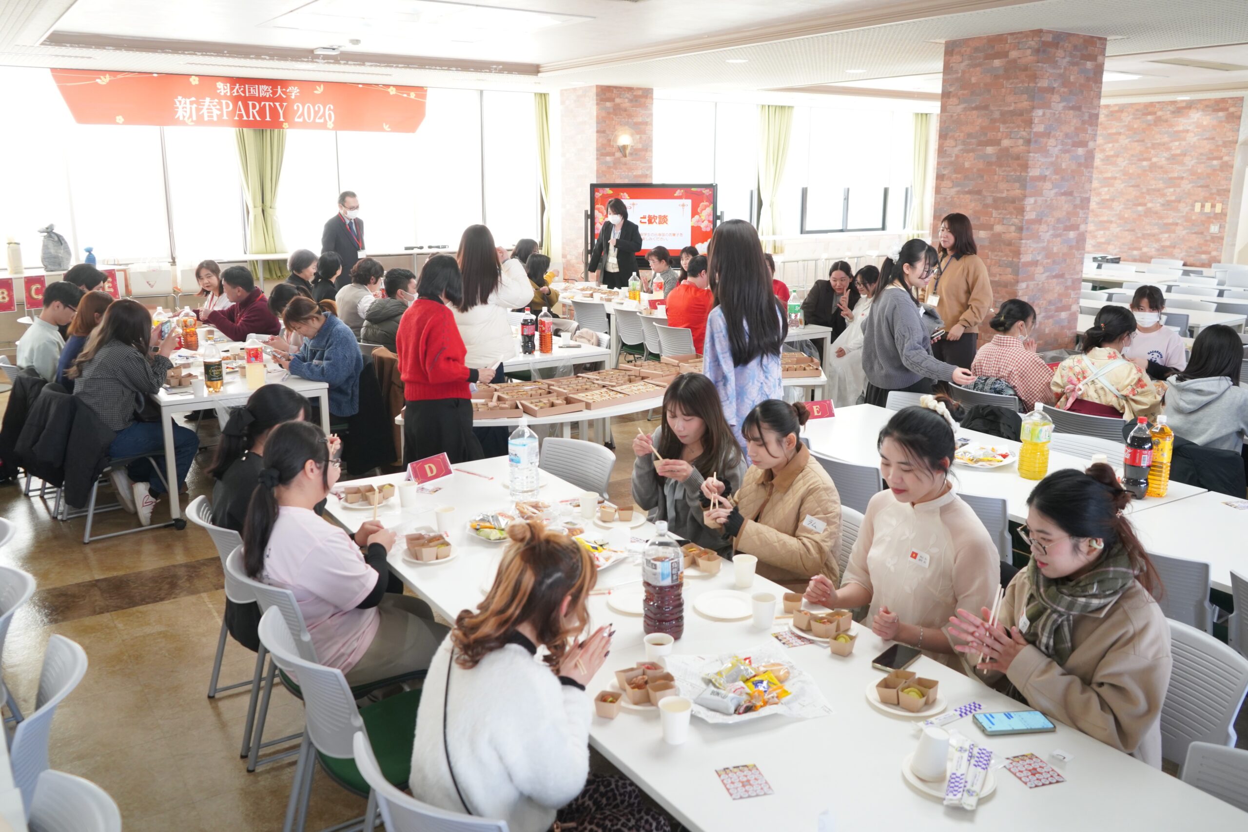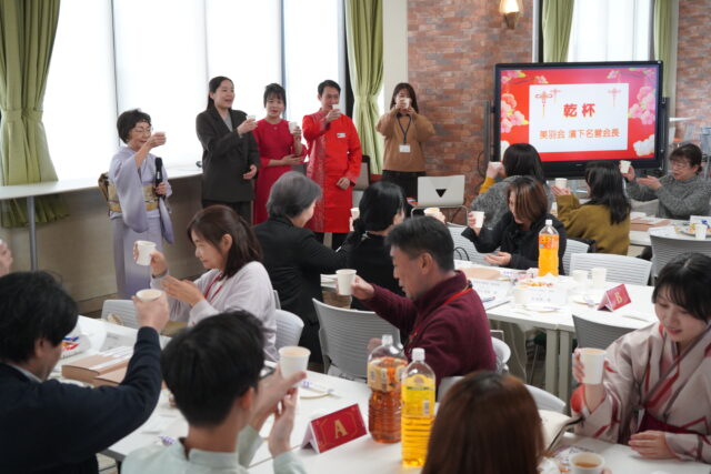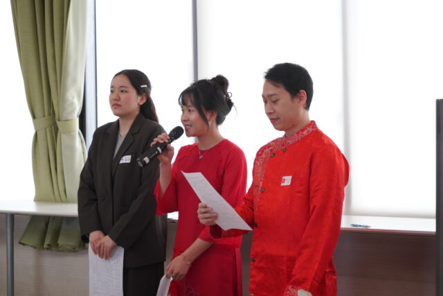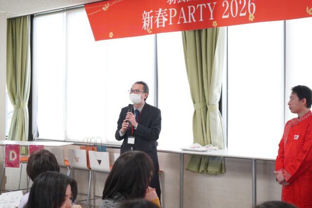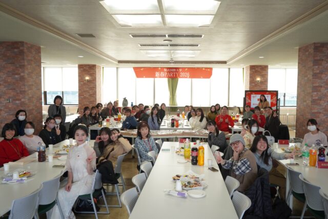 留学生が多く在籍する本学では、毎年旧正月に合わせて新春PARTYを実施しています。学生・教職員に加え、同窓会・美羽会や教育後援会の皆さまにもご参加いただき、今年は約58名の参加者とともに新年を祝いました。