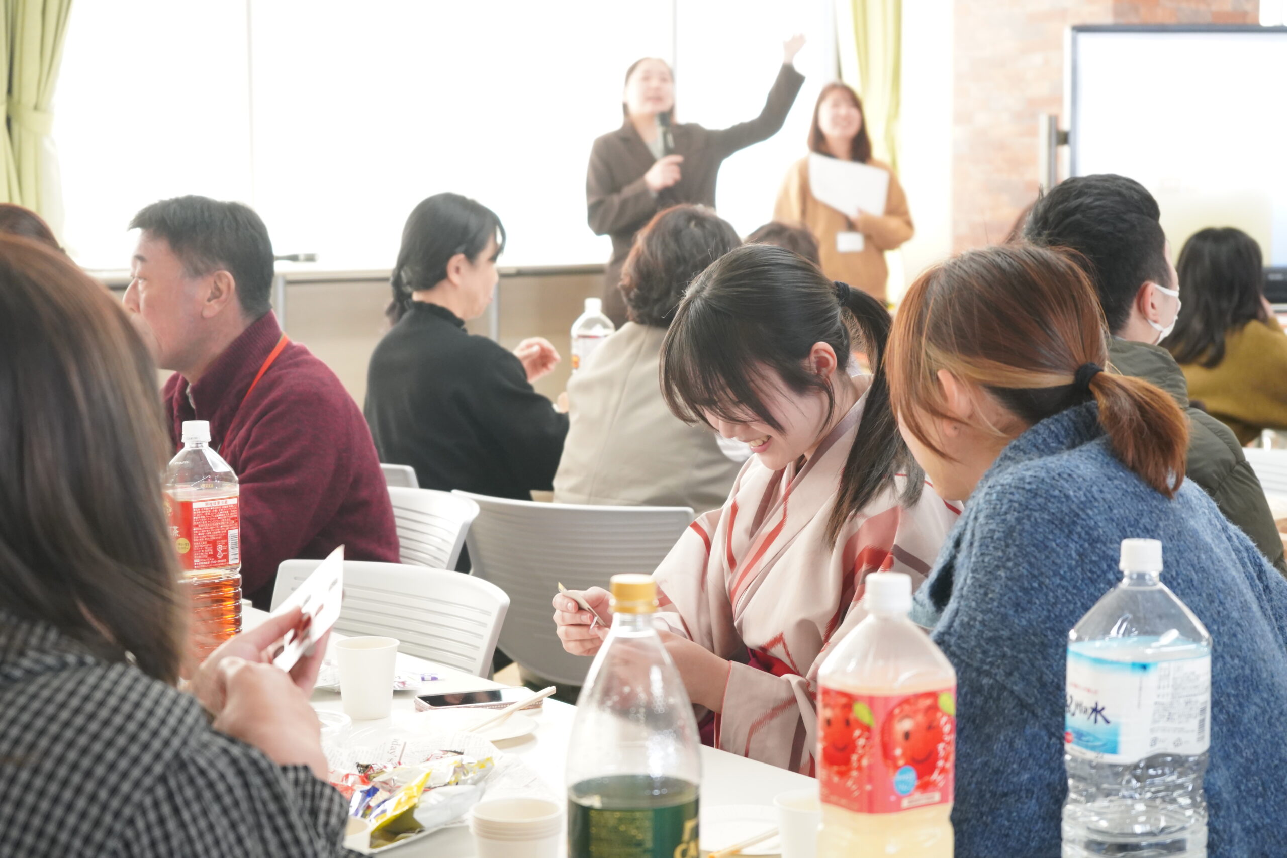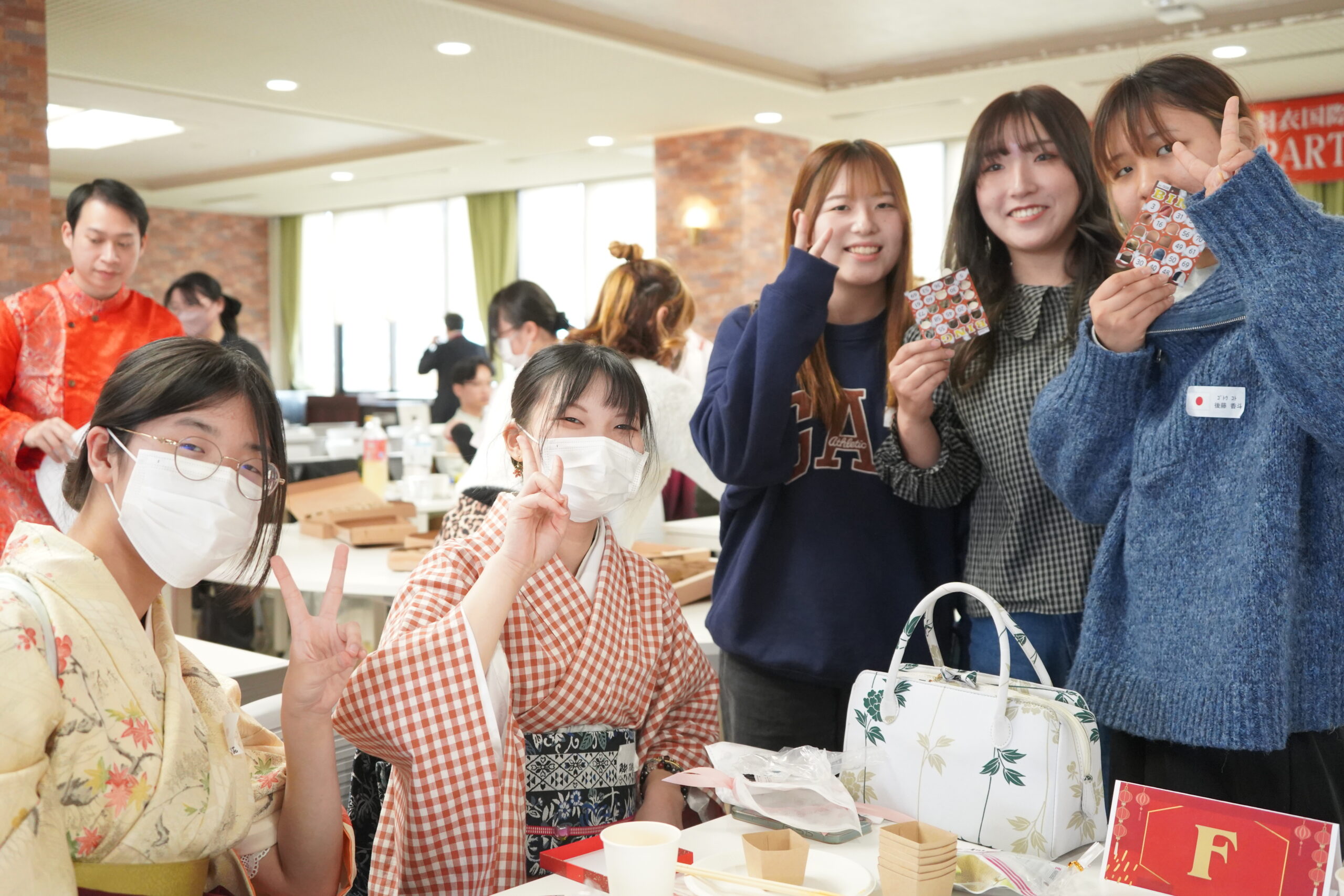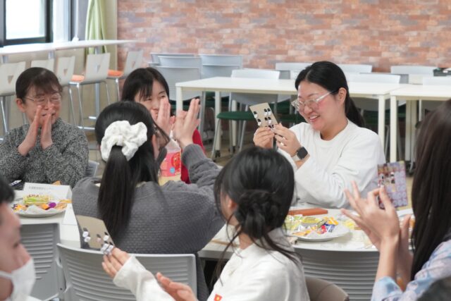 パーティの最後には、ビンゴ大会を実施しました。司会の読み上げる数字に一喜一憂し、ビンゴが成立すると会場からは大きな拍手が上がりました。最終的に、5名の幸運な学生が見事賞品を獲得しました。