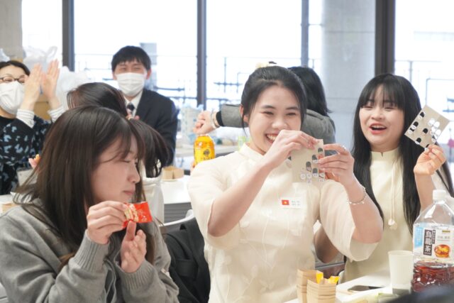 留学生だけでなく、留学生と一緒に旧正月を祝いたい日本人学生も参加し、食事を囲みながら交流を深める、和やかで楽しい国際交流の場となりました。
