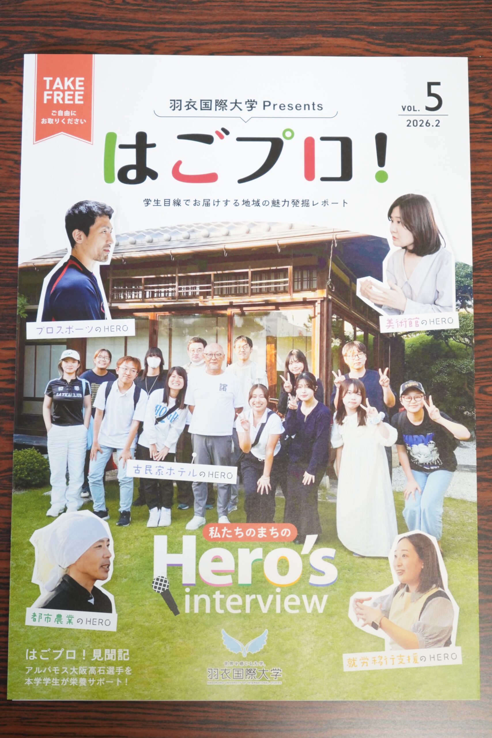 羽衣国際大学周辺にある地域資源を学生目線で取材・発信することを目的に、「はごプロ!」と名付けたフリーペーパーを制作しており、2021年から継続して実施し、今年で5年目を迎えました。